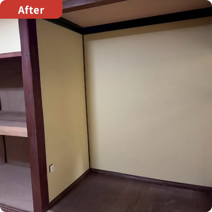 既存の内装状態を確認したうえで、空間全体のバランスを意識しながら内装工事を実施しました。使い勝手と仕上がりの両立を重視し、丁寧に施工しています。